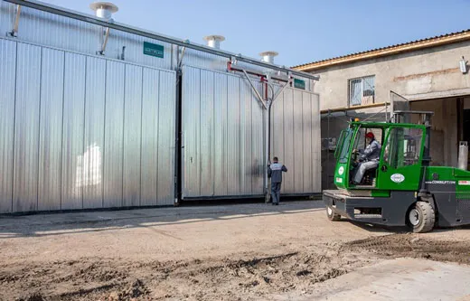 - Сушильное оборудование для всех пород древесины с фронтальной загрузкой при помощи автопогрузчика